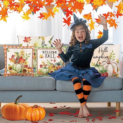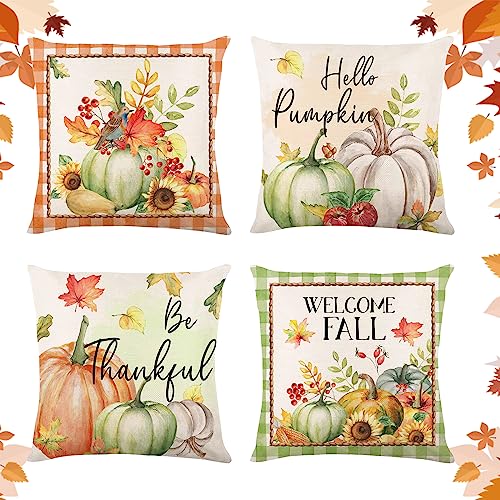 Bekecidi Fodere per Cuscini Autunnali 45 cm x 45 cm, Set di 4 Decorazioni Autunnali Fodere per Cuscini a Forma di Zucca per Il Ringraziamento Autunnale Divano Camera da Letto Home Office Decor