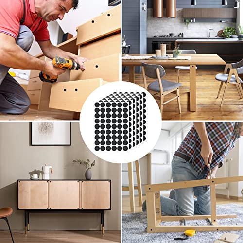 Bekecidi 6 fogli 840 pezzi Adesivi Autoadesivi neri per fori per viti, Adesivi per Copri fori per viti in Plastica Coperture per Tappi a Vite Antipolvere per viti per Mobili in Legno 12 mm