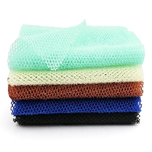 Bekecidi 5 Pezzi Rete Esfoliante Corpo Africano Spugna da Bagno Lunga Spugna Corpo Africano per Corpo Spugna Rete Africana Pelle Liscia per Donna Uomo Doccia, 5 Colori