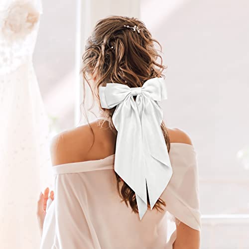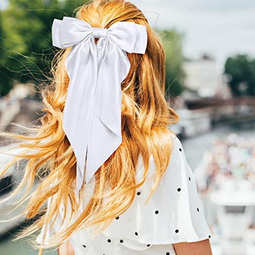 Bekecidi Bekecidi 2 Pezzi Fermagli Per Capelli Con Fiocco Grande, Accessori Per Capelli Fiocco, Mollette Per Capelli Donna In Raso Per Ogni Occasione Come Vita Quotidiana, Compleanni, Feste (Bianco)