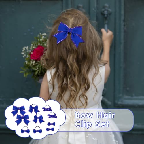 Bekecidi 10 Pezzi Fiocco Accessori per Capelli Set Fiocco Fermagli per Capelli Fiocco Fiocco Elastico per Ragazze Bambini (blu)