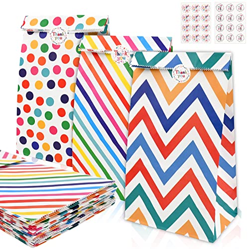 Bekecidi 24 Pezzi Sacchetti da Regalo - Sacchetti Regalo di Carta 3 Modelli Sacchetti Caramelle con 24 Pezzi Adesivi Sacchetti a Strisce Arcobaleno Pois Colorati per Pasqua, Halloween, Bomboniere