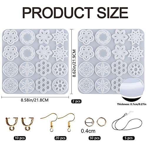 【Set di stampi in silicone】:otterrai 2 pezzi di stampi in resina per orecchini,puoi fare il fai-da-te con i tuoi amici,che possono dare pieno gioco alla tua creatività.Il kit per la creazione di orecchini fornisce 5 corde di cera nera,10 fibbie per ciondoli,20 ganci per orecchini e 50 anelli di salto d'oro Inizia il tuo viaggio nella creazione di gioielli!