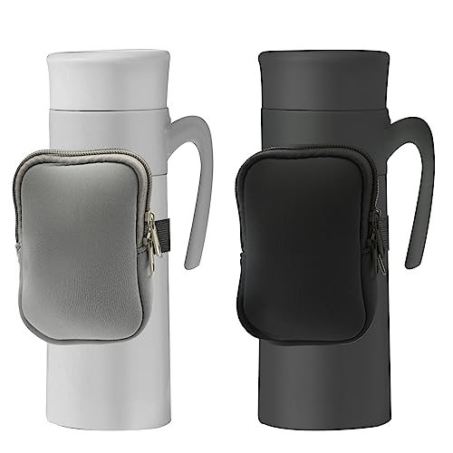 Bekecidi 2 PCS Tasca per Borraccia: Accessori da Palestra per Donna Uomo, Borraccia da Corsa Portatile, Compatibile con Tumbler Quencher Adventure 40oz e IceFlow 20oz 30oz (grigio+nero)