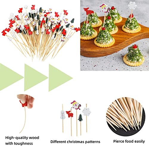 Bekeify Bastoncini da Cocktail di Natale 200Pcs Bastoncini per Cocktail in Legno 12cm Frutta Stuzzicadenti di Christmas Cocktail Sticks di Renna Albero di Natale Cupcake Decorazioni Spiedini Picks