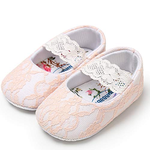 Beladla Scarpe Battesimo Bambini Scarpe Principessa in Pizzo Confortevole 0-18 Mesi da Culla Neonato Bianco Primi Passi Scarpe Neonata Ballerine Basse Morbide