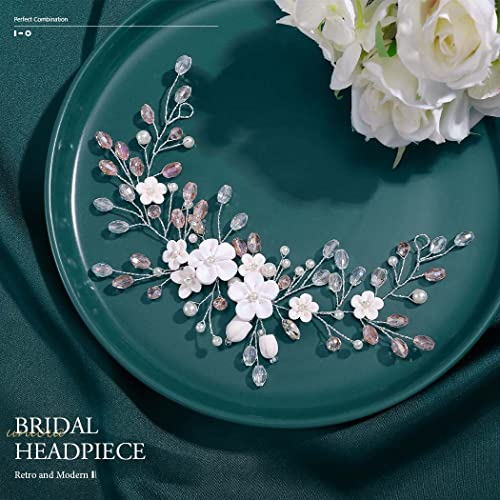 Materiali per copricapo da sposa: floreale, lega, perle e cristallo. La vite per capelli da principessa fatta a mano al 100% ti decorerà elegante.