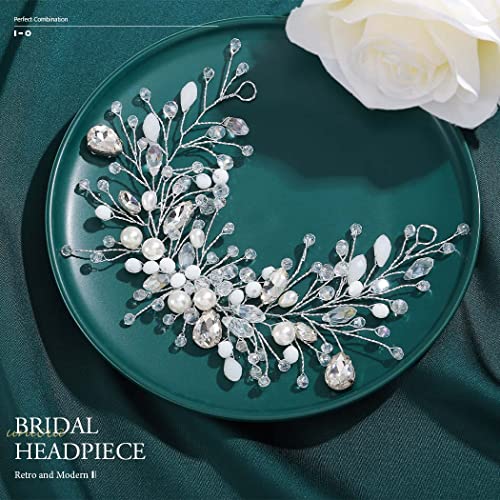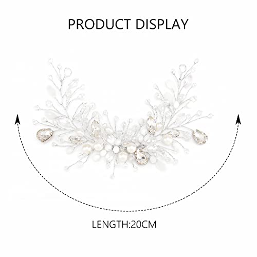 Belasa - Accessorio per capelli in cristallo, argento e perle da sposa, in stile floreale, gioiello per capelli da donna e damigella