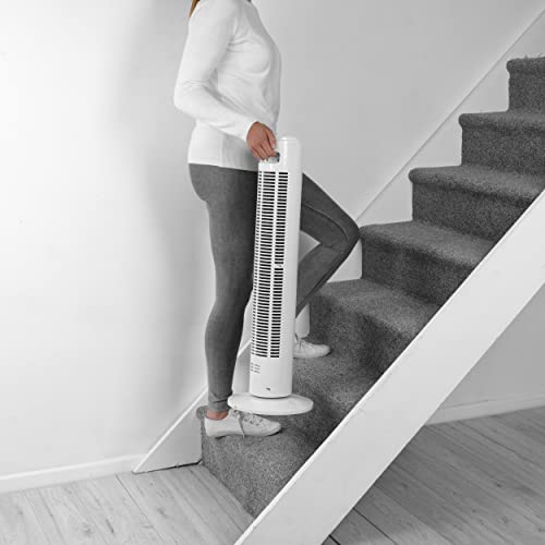 Beldray Ventola a torre EH3230VDE da 32 pollici con spina europea, Timer integrato, 3 Impostazioni di velocità, funzione di oscillazione, Bianco