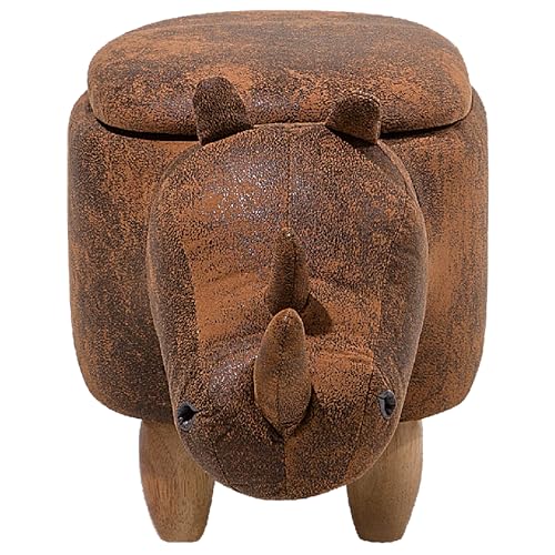 Beliani Pouf Animaletto Forma di Rinoceronte Ecopelle Marrone Chiara Gambe Legno