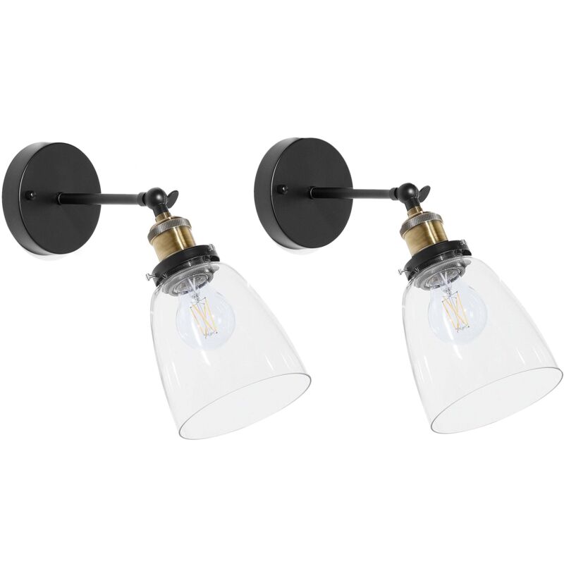 Coppia di applique in vetro trasparente. Rinnova ogni stanza con questo set di 2 lampade da parete. Realizzato in metallo di altissima qualità, presenta un paralume conico in vetro trasparente che diffonde una luce calda. Ideale per interni in stile classico, industriale o moderno. Dettagli: Tipo di prodotto: Applique Stile: Moderno Colore principale: Nero Tipo di materiale: Metallo Materiale principale: Metallo Materiale secondario: Vetro Materiale del paralume: Vetro Parti regolabili: paralume Potenza elettrica: Max. 40W Codice IP di protezione: IP 20 Lampadine richieste: 2 Voltaggio: 220-240 V (50 Hz) Dimensioni: Profondità: 25 cm Larghezza: 14 cm Altezza: 26 cm Peso: 1 kg L'offerta include: 2 x Lampada da parete, Non include: Lampadine Caratteristiche chiave: Paralume regolabile, Adatto a ogni stile di decorazione d'interni, Arredo decorativo e funzionale, Risparmio energetico ottimizzato, Alta qualità, Facile da pulire Guida al montaggio: Richiede installazione. 20-40 min.