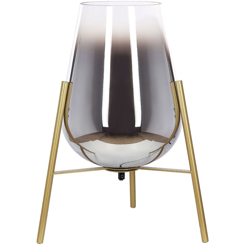 Lampada da tavolo in metallo con base a treppiede. Illumina la tua stanza e aggiungi questa lampada da tavolo decorativa e accattivante. La sua base color oro è realizzata in acciaio di alta qualità, che lo rende resistente, mentre il suo paralume è realizzato in vetro trasparente, fumè. Grazie al suo design unico è ideale per ambienti moderi e industriali. Dettagli: Tipo di prodotto: Lampada da tavolo Stile: Glamour Colore principale: Oro Tipo di materiale: Acciaio Materiale principale: Acciaio Materiale secondario: Vetro Materiale della base: Acciaio Materiale del paralume: Vetro Potenza elettrica: 40W Finitura: Verniciato Codice IP di protezione: IP 20 Lampadine richieste: 1 Voltaggio: 220-240 V (50 Hz) Dimensioni: Lunghezza del cavo: 205 cm Profondità: 55 cm Larghezza: 55 cm Altezza: 44 cm Peso: 2 kg L'offerta include: 1 x Lampada da tavolo, Non include: Lampadine Caratteristiche chiave: Ideale come luce ambiente, Look accattivante, Ideale sia per la camera da letto che per il