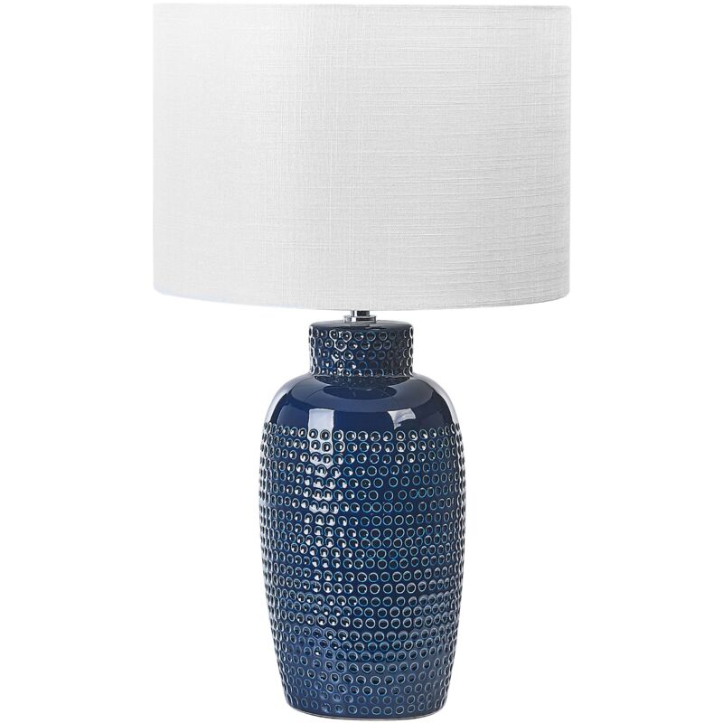Lampada moderna con paralume. Questa lampada da tavolo fatta a mano è un accessorio elegante che aggiunge un tocco accogliente ovunque sia posizionato. La base presenta una struttura unica per un look attraente. Grazie al paralume a forma di tamburo, la lampada crea una luce piacevole e morbida. Adatta per qualsiasi soggiorno, camera da letto e corridoio, in stile moderno o tradizionale. Dettagli: Tipo di prodotto: Lampada da tavolo Stile: Moderno Colore principale: Blu Tonalità: Blu marino Tipo di materiale: Ceramica Materiale principale: Ceramica Materiale secondario: Lino Materiale della base: Ceramica Materiale del paralume: Lino Composizione del materiale: 65% lino Potenza elettrica: 40W Finitura: Brillante Codice IP di protezione: IP 20 Lampadine richieste: 1 Voltaggio: 230 V (50 Hz) Dimensioni: Dimensioni della base: 12x12 Lunghezza del cavo: 157 cm Profondità: 32 cm Larghezza: 32 cm Altezza: 53 cm Peso: 1.8 kg L'offerta include: 1 x Lampada da tavolo, Non include: Lampadine