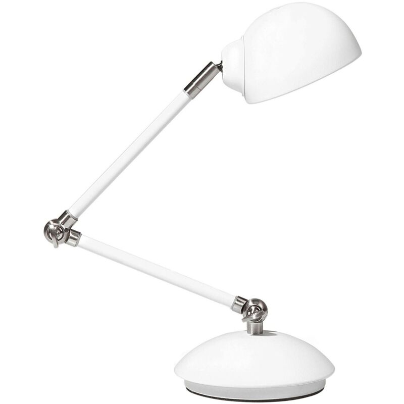 Moderna lampada da tavolo e comodino in metallo. Questa lampada da tavolo dal design funzionale è ideale per lavorare comodamente a casa. Realizzata in durevole metallo di altissima qualità, presenta un pratico braccio regolabile con 3 snodi che, così come il paralume, consente di orientare la direzione della luce. Dettagli: Tipo di prodotto: Lampada per bambini Stile: Industriale Colore principale: Bianco Tipo di materiale: Metallo Materiale principale: Metallo Materiale secondario: PVC Materiale del paralume: Metallo Potenza elettrica: Max. 40W Codice IP di protezione: IP 20 Lampadine richieste: 1 Voltaggio: 220-240 V (50 Hz) Dimensioni: Lunghezza del cavo: 145 cm Profondità: 11 cm Larghezza: 11 cm Altezza: 60 cm Peso: 1 kg L'offerta include: 1 x Lampada da tavolo, Non include: Lampadine Caratteristiche chiave: Paralume regolabile, Braccio regolabile, Ideale anche come illuminazione da lettura, Design classico, Ottimo complemento per ogni interno domestico, Arredo multifunzionale