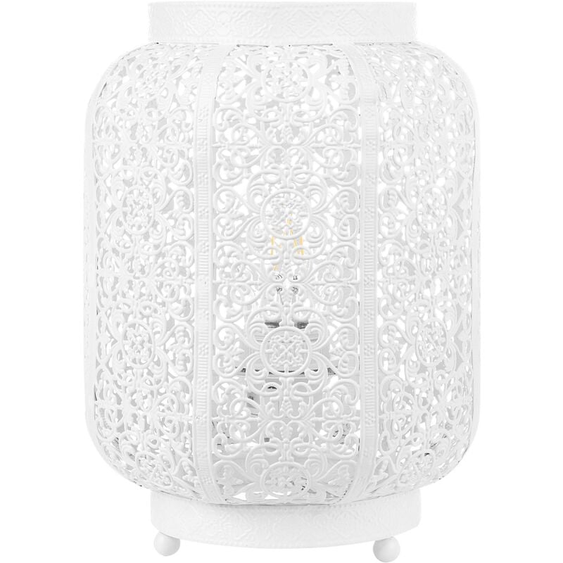 Lampada da tavolo in metallo. Questa lampada da tavolo è la scelta perfetta per interno sia in stile moderno che vintage. Realizzata in metallo di altissima qualità, presenta un prezioso paralume che diffonde una luce calda e accogliente. Simile a una lanterna, aggiungerà un tocco romantico al soggiorno, alla camera da letto o alla sala da pranzo. Dettagli: Tipo di prodotto: Lampada da tavolo Stile: Boho Colore principale: Bianco Tonalità: Crema Tipo di materiale: Metallo Materiale principale: Metallo Materiale della base: Metallo Materiale del paralume: Metallo Potenza elettrica: Max. 40W Codice IP di protezione: IP 20 Lampadine richieste: 1 Voltaggio: 220-240 V (50 Hz) Dimensioni: Lunghezza del cavo: 200 cm Profondità: 13 cm Larghezza: 13 cm Altezza: 27 cm Peso: 1 kg L'offerta include: 1 x Lampada da tavolo, Non include: Lampadine Caratteristiche chiave: Luce soffusa, per un'atmosfera rilassante, Arredo decorativo e funzionale, Aggiunge un tocco di stile a ogni stanza, Risparmio