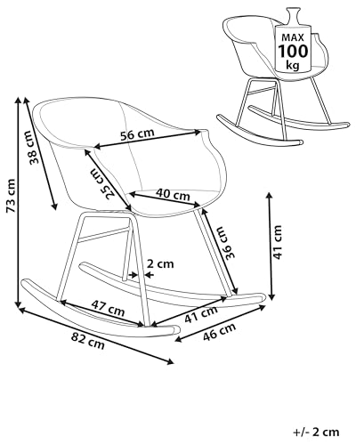 Le dimensioni di questa sedia a dondolo di design 56 x 82 x 73 cm Altezza seduta di 41 cm e profonda 40 cm Schienale alto 38 cm
