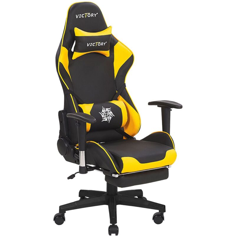 Sedia da gaming. Questa sedia da ufficio è pensata per offrire il massimo comfort. Realizzata in pelle sintetica di altissima qualità, presenta una soffice imbottitura, sia al livello della zona cervicale che di quella lombare, alleviando il peso sulla colonna vertebrale. Il sedile della poltrona è dotato di seduta in memory foam che si adatta ai contorni del corpo, riduce i punti di pressione e garantisce un comfort ottimale.Grazie alla seduta e ai braccioli regolabili in altezza è perfetta anche per il relax. Se vuoi fare un pisolino infine, sarà sufficiente portare lo schienale in posizione completamente reclinata e far scorrere il poggiapiedi verso l'esterno. Dettagli: Tipo di prodotto: Sedia da gaming Stile: Moderno Colore principale: Nero Tipo di materiale: Ecopelle Materiale principale: Pelle sintetica Materiale secondario: Metallo Materiale delle gambe: Metallo Materiale della seduta: Ecopelle Composizione del materiale: 100% pelle sintetica Perno 360°: Sì Poggiabraccia: Sì