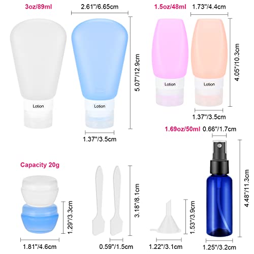 Miglior regalo: il set comprende 4 bottiglie di diverse dimensioni, bottiglie spremute, bottiglie 1 spray, 2 lattine, 2 cucchiai, 1 imbuto e un sacchetto di lavaggio trasparente gratuito. È un regalo perfetto per amici, donne, madri e colleghi.