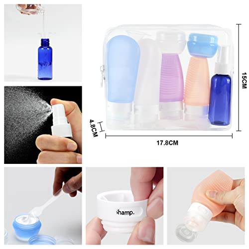 BELICOO Bottiglie da Viaggio in Silicone 10 pezzi flaconi viaggio ricaricabili per Shampoo, cosmetici, balsamo, crema solare, sapone, Approvato dalla FDA