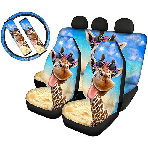 Belidome - Set di coprisedili per auto con cinghie di sicurezza e protezione per volante, morbidi ed elasticizzati, misura universale