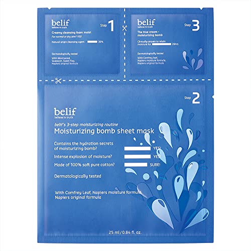 Belif Moisturizing Bomb Sheet Mask, Maschera Idratante Maschere per il viso, Senza olio di palma Idratante Vegano, Cura del viso, Cura della pelle, Cosmetici Coreani, Korean Skin Care Beauty