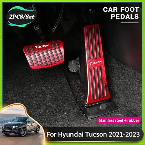 BELIKES Auto Acciaio Inossidabile Pedali Copripedale Auto in Pedali Automatici Freno A Gas Cluth Copripedali, per Hyundai Tucson NX4 2021 2022 2023,E Silver2