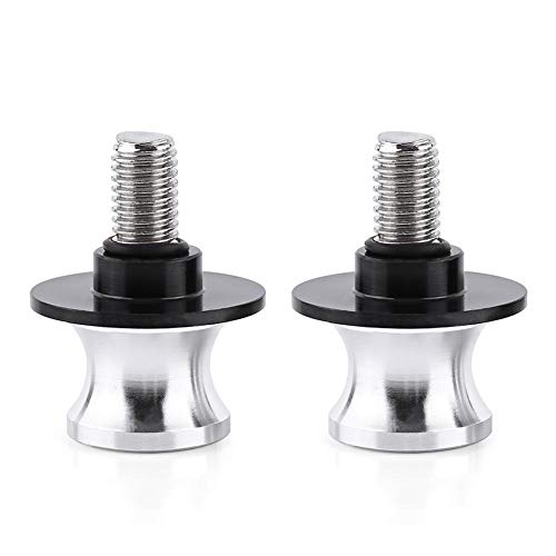 Belissy Moto Swing Arm Spool Motorcycle CNC Sliders Stand, 2PCS 10mm Motorcycle CNC Posteriore Stand Swing Arm Spool Sliders Stand Swingarm Bobbins Argento