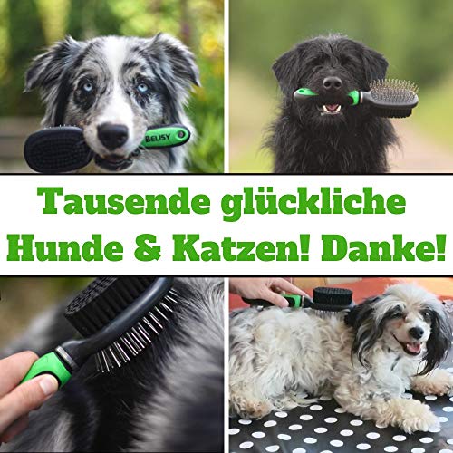 BELISY Spazzola per Cani/Gatti Doppio Lato -Toelettatura Cani - Rimuove Peli Superflui e Sbroglia Nodi - Spazzola Peli per Animali - Pettine Animali - Peli Medi E Lunghi - Verde