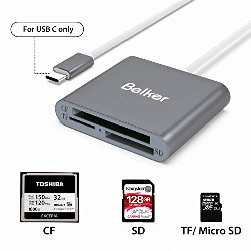 Belkertech Lettore di schede USB C Lettore di schede CF tipo C Lettore di schede di memoria USB 3.1 Tipo C per schede Compact Flash (CF), SDXC, SDHC, SD, Micro SD/TF per MacBook Pro Space Grey