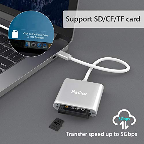 Belkertech USB C SD Card Reader Type C CF Card Reader USB 3.1 Type C Memory Card Reader for Compact Flash (CF), SDXC, SDHC, SD, Micro SD/TF Card for MacBook PRO, ChromeBook, New iPad PRO 2018 -Silver