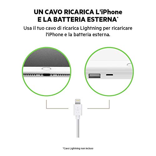 Belkin Boost Charge Batteria Esterna 5K con Connettore e Cavo Lightning (Certificazione MFi, per iPhone 12, 12 Pro, 12 Pro Max, 12 mini, 11, 11 Pro/Pro Max, XS, XS Max, XR, X, SE, iPad), Bianco