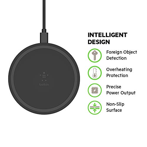 Belkin Boost Up - Ricarica wireless da 10 W, caricabatterie wireless Qi veloce per iPhone 11, 11 Pro/Pro Max, XS, XS Max, XR, SE, Samsung S20, 20+, 20 Ultra, S10, S10+, S10e, Airpods con spina UK inclusa, colore: Nero