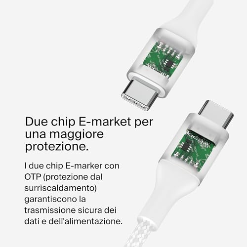 RICARICA SICURA E GARANZIA DI 2 ANNI: 2 chip E-Marker con OTP (protezione da surriscaldamento) offrono la massima sicurezza durante la ricarica. Il cavo include anche una garanzia di 2 anni, per proteggere il cavo e i tuoi dispositivi dai danni.