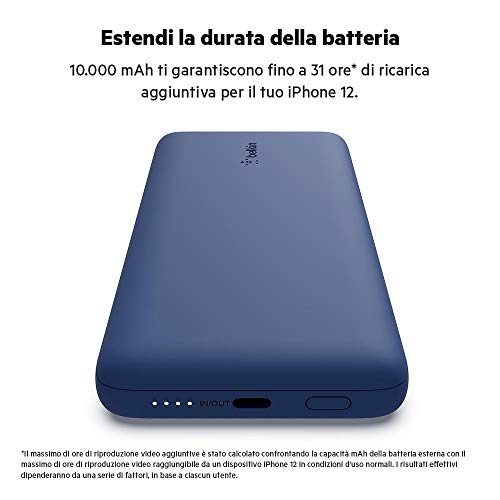 Belkin BoostCharge Plus Batteria esterna portatile 10K (power bank 10.000 mAh con cavi Lightning (MFI) e USB-C integrati e porta di ricarica USB-C aggiuntiva) - Blu