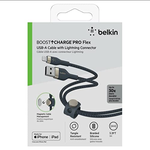 Belkin BoostCharge Pro Flex Cavo intrecciato da USB Type A a Lightning (1 m), cavo di ricarica certificato MFi, per iPhone 14/14 Plus, 13, 12, Pro, Max, mini, SE, iPad e altri - Blu