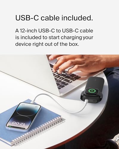 Belkin Caricabatteria wireless rapido per Apple Watch e power bank 10K con cavo USB-C/USB-C (30 cm), ricarica 33% più veloce per Apple Watch Ultra 8/7, iPhone 14, iPhone 13;