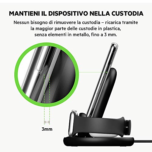 Fornisce una ricarica wireless rapida per i modelli di iPhone compatibili con la tecnologia Qi, fino a 7,5 W, e per Apple Watch ed AirPods fino a 5 W
