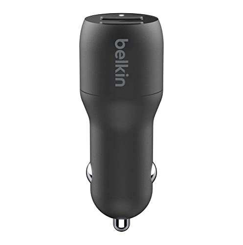 Belkin Doppio caricabatteria da auto USB da 24 W (Caricabatteria da auto Boost Charge con 2 porte USB per iPhone 14/14 Plus, 14 Pro/ Pro Max, 13, 12 e modelli precedenti, caricabatteria per Android)