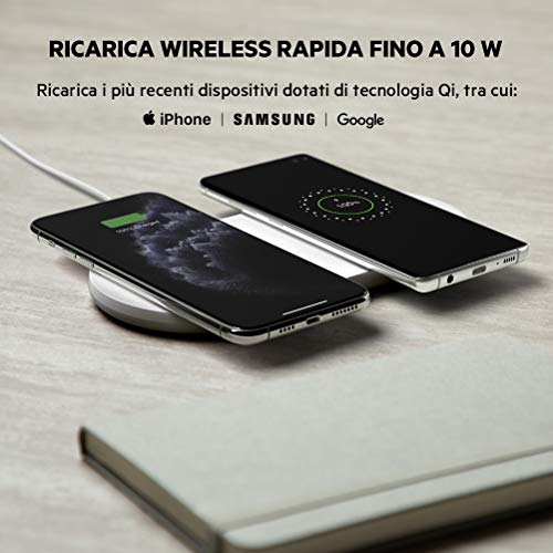Fornisce una ricarica wireless rapida simultanea, fino a 10 W, per due dispositivi dotati di tecnologia Qi