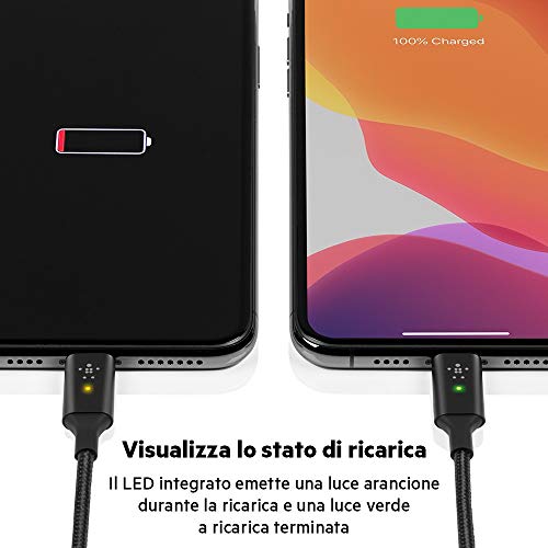 Belkin Cavo di Ricarica da USB a Lightning con LED Intelligente, 1.2 m (Visualizza lo stato di ricarica), per iPhone, AirPods e iPad, Certificato Mfi, Nero