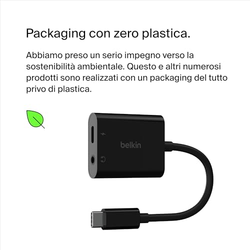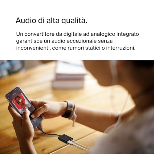Belkin RockStar Adattatore Audio da 3.5 mm + Ricarica USB-C, Convertitore Audio USB-C Compatibile con iPad Pro 12.9'', 11, Galaxy, Pixel, OnePlus e Altri