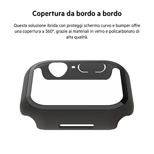 Belkin ScreenForce Bumper con proteggi schermo in vetro temprato integrato per Apple Watch 40 mm, 41 mm Series 8, SE, 7, 6, 5, 4, antigraffio, installazione facile - Nero