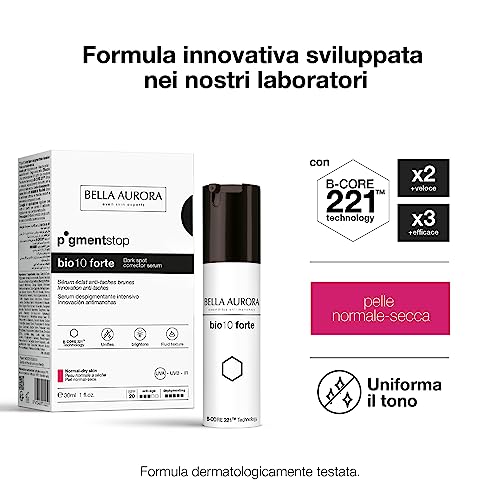 Bella Aurora, PigmentStop bio10forte, Trattamento Intensivo Anti-Macchie Scure, Crema Anti-Invecchiamento per le Macchie Scure del Viso Depigmentazione della Pelle del Viso, 30ml (Pelle Normale-Secca)