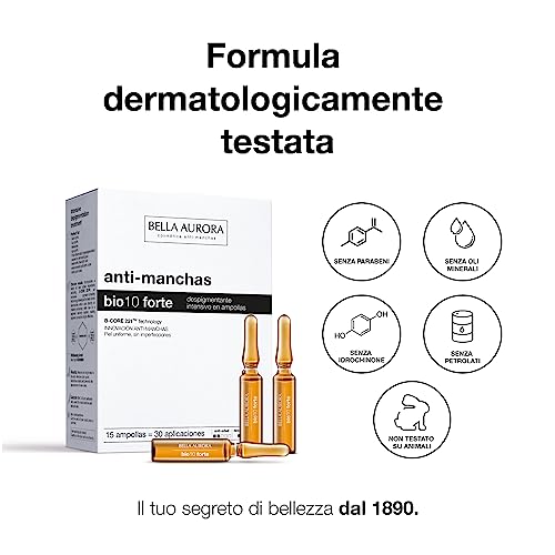 Bella Aurora, PigmentStop bio10forte, Trattamento Intensivo Anti-Macchie Scure, Trattamento depigmentante, Serum per le Macchie Scure del Viso, Depigmentazione della Pelle (15 Fiale x 2ml)