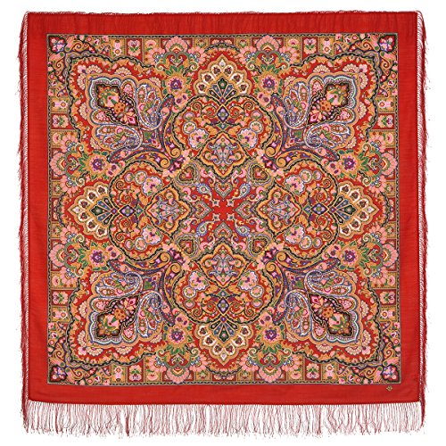 Bella e autentica russo Pavlovo Posad donna sciarpa scialle Rosso, stola Paisley Folk, 100% lana, con frange di seta, 146cm x 146cm