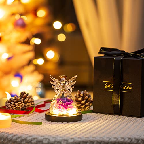 La Bella e la Bestia Rosa in Cupola di Vetro Ornamento con Angelo Regali con Luce a LED Conservata eterna per Sempre Rosa incantata per Le Donne Mamma Il Suo Compleanno Decorazioni Anniversario