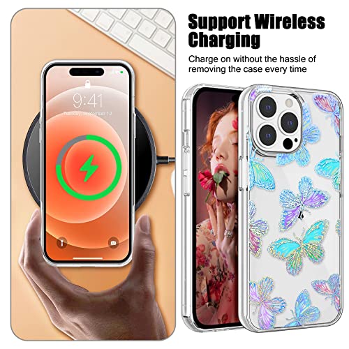 Bella Custodia Protettiva con Brillantini Farfalla di Design per iPhone 14 Pro Max, Anti-sbiadimento Antiurto Antigraffio Antiscivolo Ultrasottile Silicone TPU Cover per iPhone 14 Pro Max - Colori