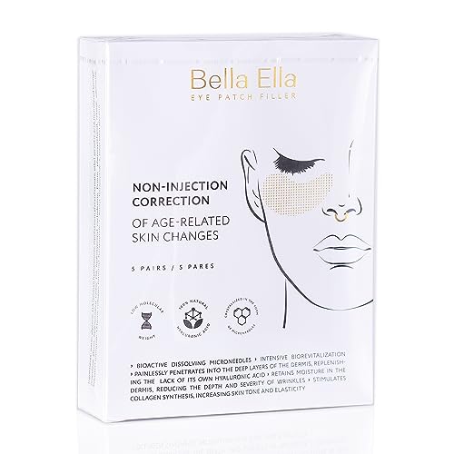 Bella Ella Patch per occhi con microaghi con maschera per occhi con microaghi all'acido ialuronico per linee sottili Rughe Linee del sorriso Trattamento occhi occhiaie - 5 paia (10 pezzi)