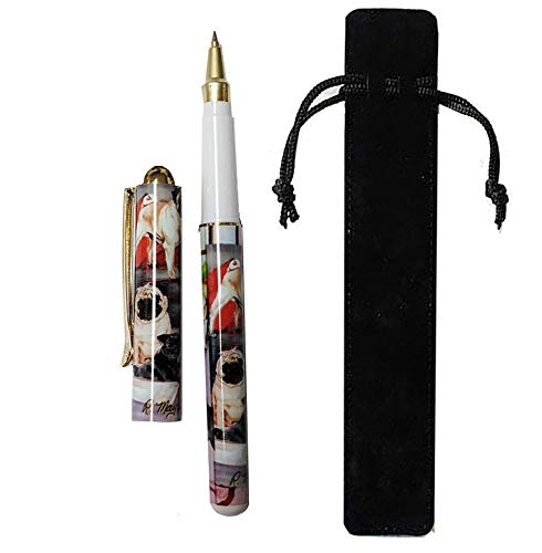 Pug Dog Gift. Bella penna roller con sacchetto di velluto nero.