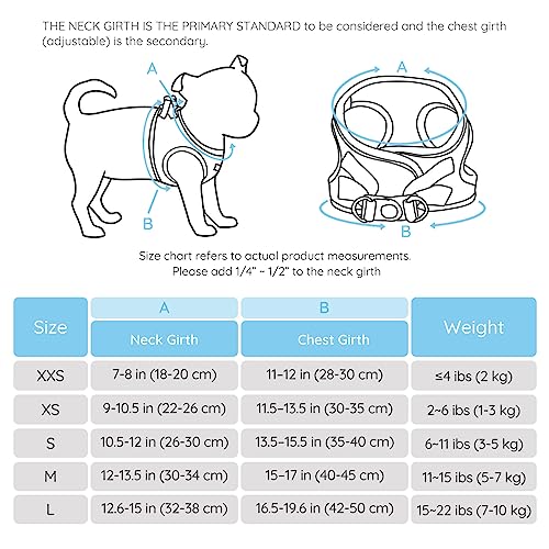 【Taglie Adatte】: si prega di misurare la circonferenza del collo del cucciolo e la circonferenza del torace prima di acquisto, non scegliere la taglia solo in base al peso, quindi fare riferimento alla tabella delle taglie. Se la circonferenza del collo o la circonferenza del torace del tuo cucciolo è compresa tra due taglie, si consiglia di scegliere la taglia più grande.